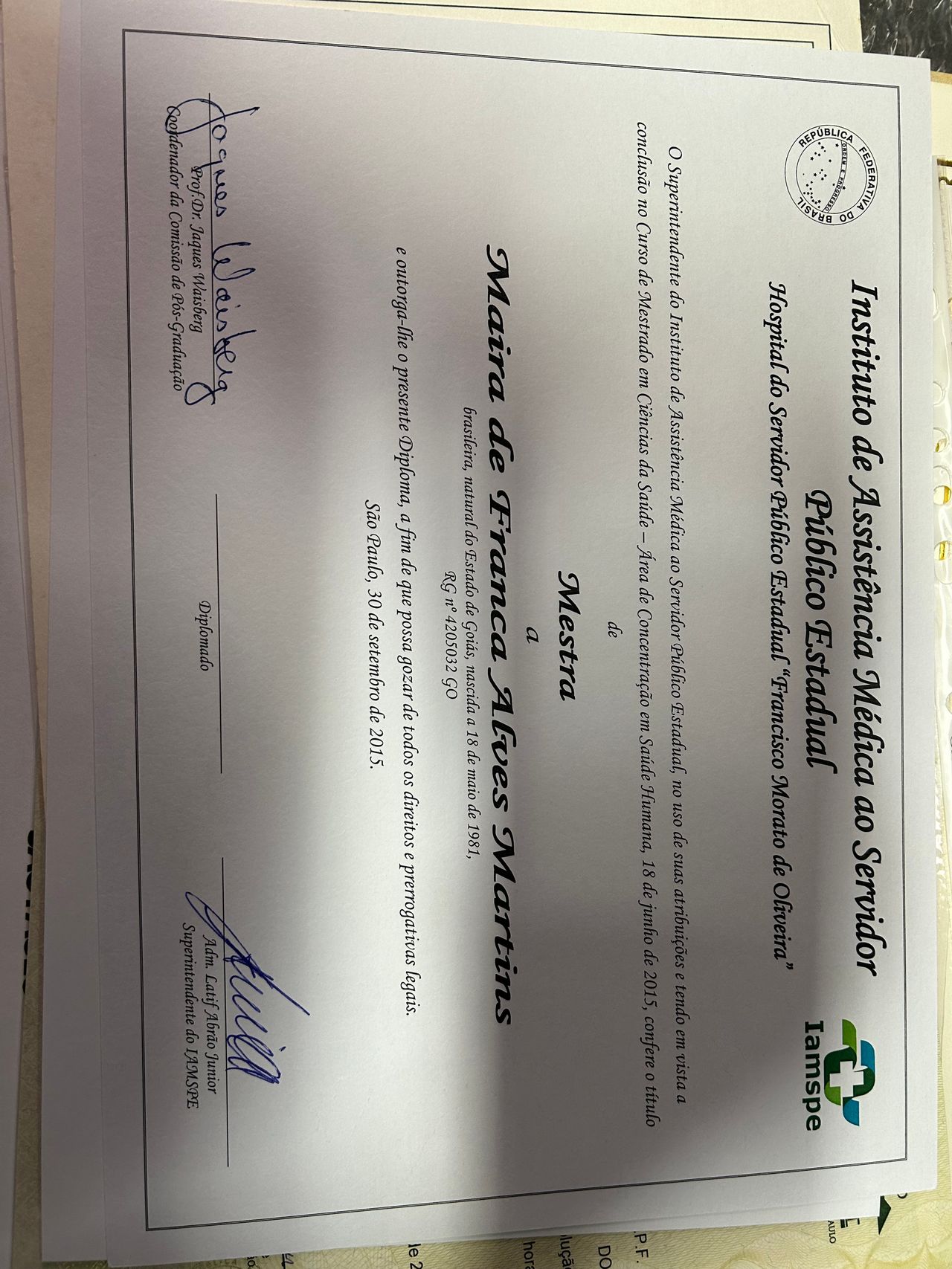 Master in Science – IAMSPE / Universidade de São Paulo (USP), São Paulo