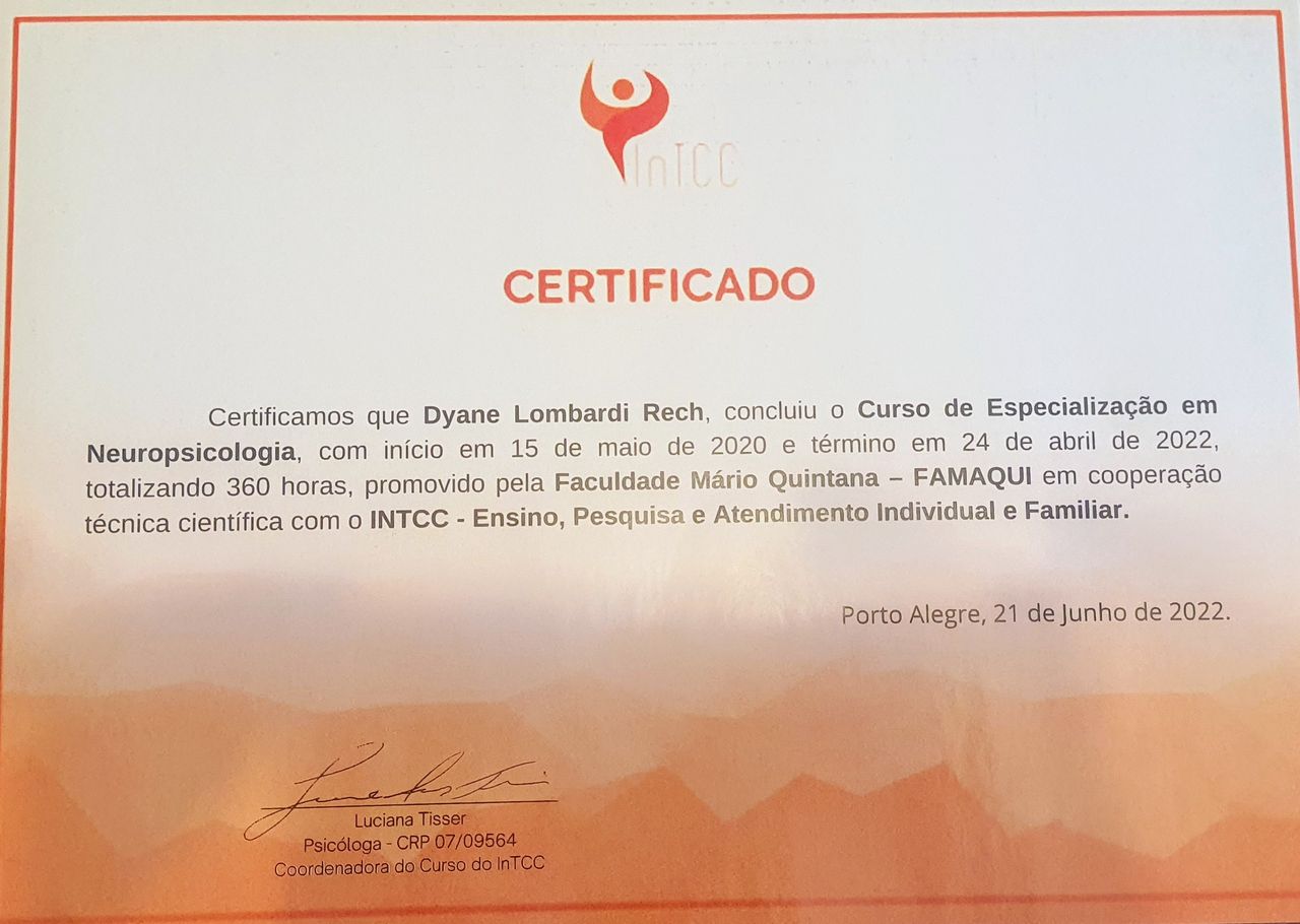 • Dyane Lombardi Rech - Psicologia e Neuropsicologia • Terapia Cognitivo Comportamental •