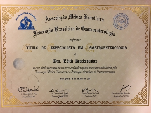 É Sócia Titular da Federação Brasileira de Gastroenterologia, reconhecimento concedido mediante aprovação em exame específico da entidade.