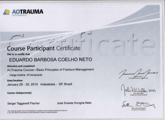 Curso AO TRAUMA COURSE - BASIC PRINCIPLES OF FRACTURES MANAGEMENT em 2016