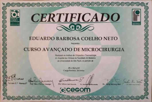 CURSO AVANÇADO DE MICROCIRURGIA pelo CEGOM -USP (2019)