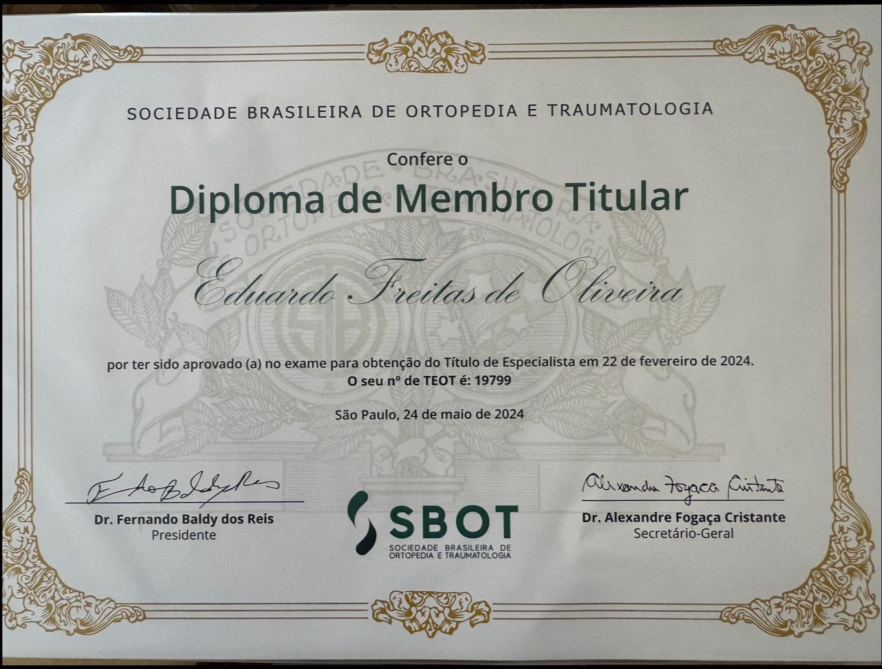 Quais são as principais especialidades de Eduardo Freitas de Oliveira?Eduardo Freitas de Oliveira é ortopedista - traumatologista. Te mostramos alguns dos serviços oferecidos pelo especialista graças à sua trajetória e vasta experiência: Primeira consulta ortopedia e traumatologia, Consulta ortopedia e traumatologia, Cirurgia da coluna cervical, Tratamento da dor crônica, Viscossuplementação, Encaixe Telemedicina, Consulta de retorno, Microcirurgia Da Hernia Discal Lombar, Vitamina D, Cirurgia da coluna.