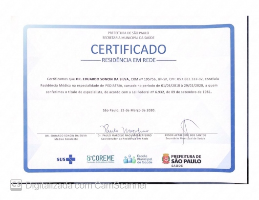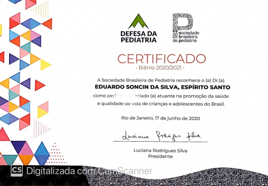 - Título de Especialista em Pediatria pela Sociedade Brasileira de Pediatria.