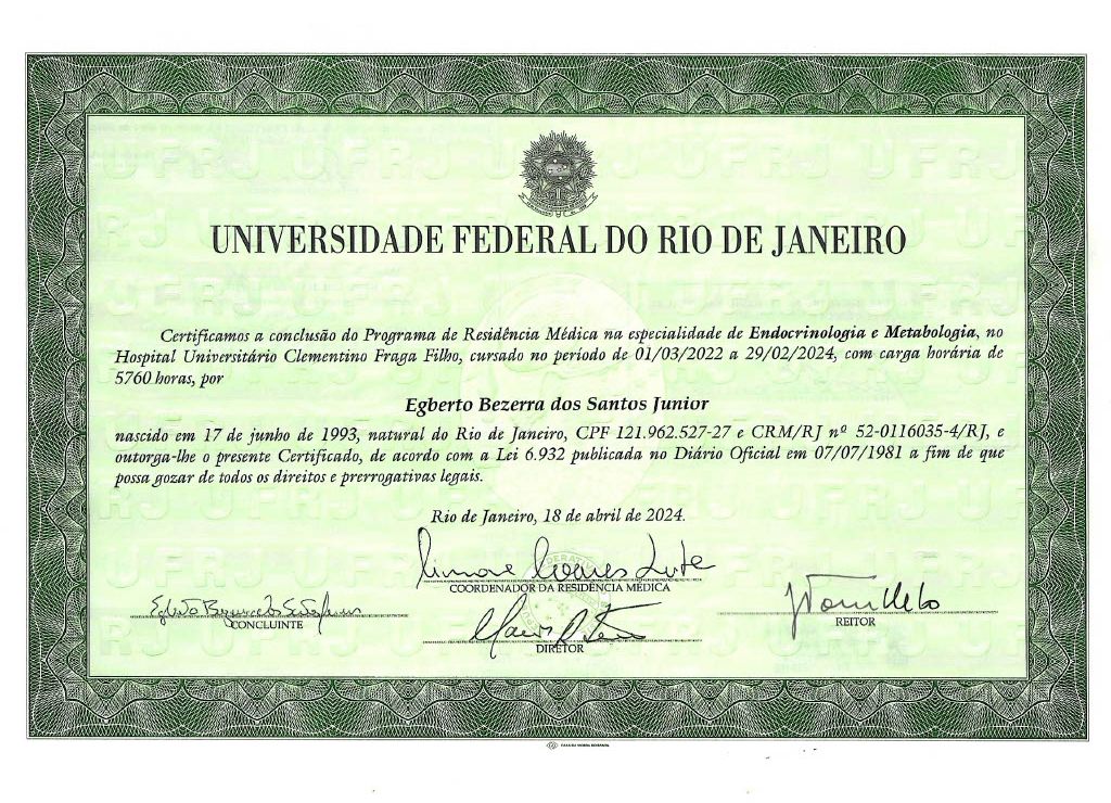 Quais são as principais especialidades de Egberto Bezerra dos Santos Junior?Egberto Bezerra dos Santos Junior é endocrinologista, especialista em clínica médica. Te mostramos alguns dos serviços oferecidos pelo especialista graças à sua trajetória e vasta experiência: Primeira consulta Endocrinologia e Metabologia, Consulta Endocrinologia e Metabologia, Teleconsulta.