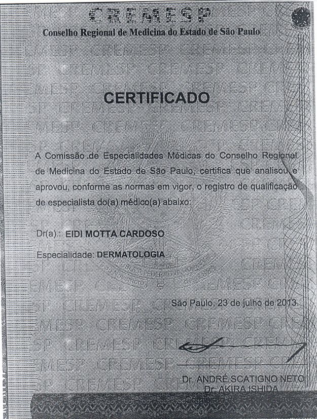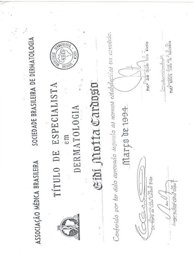 Título de Especialista pela Sociedade Brasileira de Dermatologia, em 1994. Membro da Sociedade Brasileira de Cirurgia Dermatológica, desde 1996.