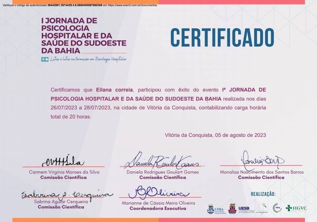 Quando poderia me consultar com Eilana Correia?Eilana Correia costuma ter horários disponíveis dentro da mesma semana ou para a semana seguinte. Verifique o calendário: você verá o primeiro horário disponível, atualizado em tempo real. Caso o horário sugerido não funcione para você, verifique outras datas. Agendar uma consulta é sempre imediato e gratuito.