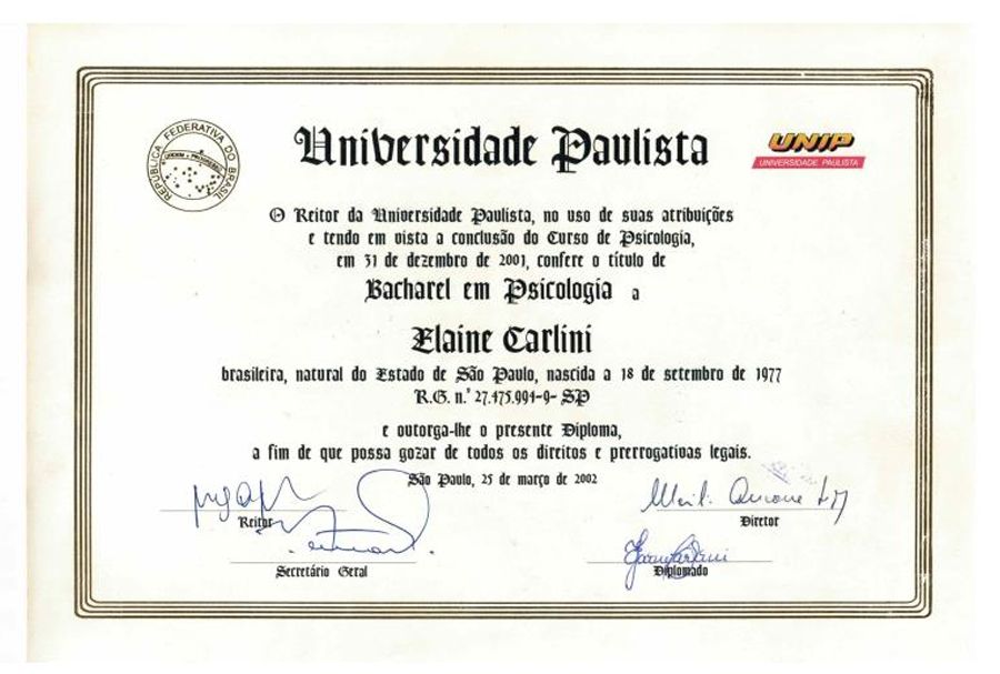 Quais são as principais especialidades de Elaine Carlini?Elaine Carlini é psicóloga, terapeuta complementar. Te mostramos alguns dos serviços oferecidos pelo especialista graças à sua trajetória e vasta experiência: Primeira consulta psicologia, Psicoterapia adulto, Tratamento da depressão, Psicoterapia, Acompanhamento Terapêutico (AT), Consulta de psicologia online, Consulta Psicologia, Tratamento da ansiedade, Consulta psicológica do adulto, Psicoterapia breve.