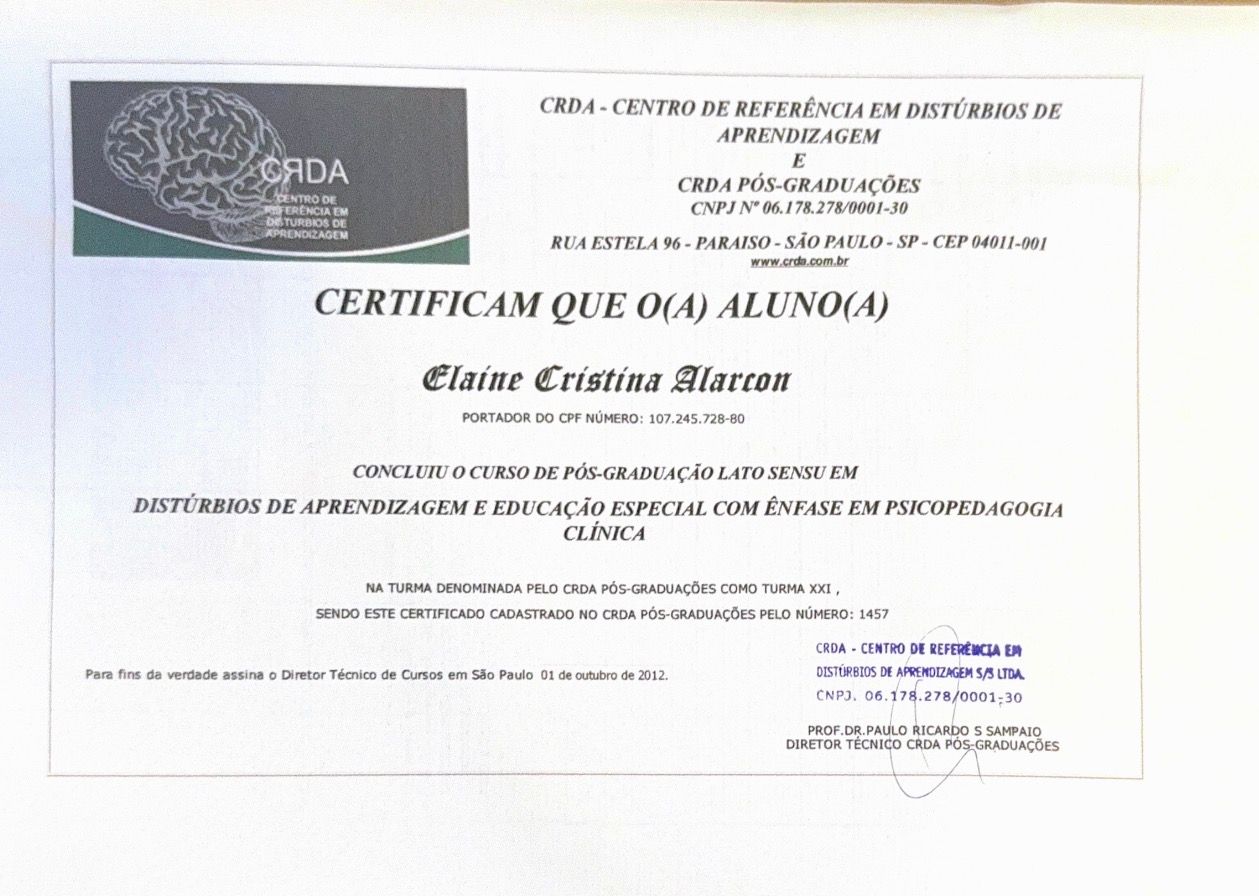 Em quais idiomas Elaine Cristina Alarcon atende?Elaine Cristina Alarcon atende em Inglês, Português.