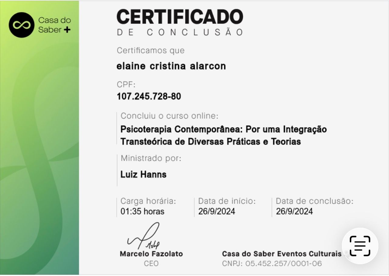 Sou Elaine Alarcon, Psicológa e apaixonada por ajudar pessoas a compreenderem seus pensamentos, emoções e comportamentos.