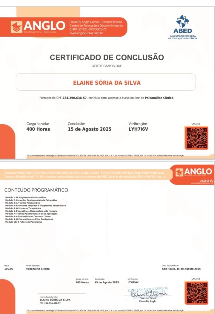 Sua escuta qualificada, postura ética e habilidade em conduzir análises complexas refletem um compromisso genuíno com a saúde mental. Profissionais com essa competência fazem grande diferença na vida das pessoas.