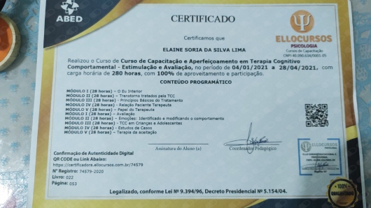 Quais são as principais especialidades de Elaine Soria Da Silva Lima?Elaine Soria Da Silva Lima é psicanalista, terapeuta complementar. Te mostramos alguns dos serviços oferecidos pelo especialista graças à sua trajetória e vasta experiência: Teleconsulta, Primeira consulta Terapias Complementares e Alternativas, Consulta neuropsicopedagogia clínica, Primeira Sessão de Terapia, Coaching na vida pessoal, Atendimento em pedagogia, Tratamento da ansiedade, Tratamento da depressão, Terapia de Casal, Transtorno de déficit de atenção e hiperatividade - TDAH.