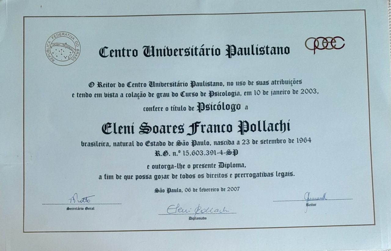 A Eleni é uma profissional extremamente inteligente e com um conhecimento admirável.Cada sessão me faz refletir e crescer de forma profunda.