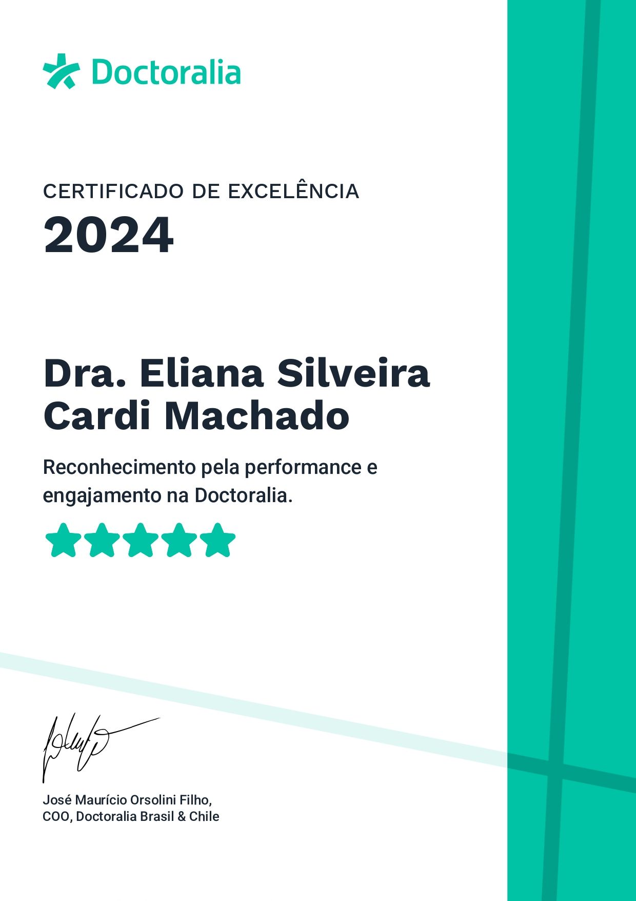 Posso passar por atendimento online com Eliana Silveira Cardi Machado, sem ter que ir até o consultório?Sim, Eliana Silveira Cardi Machado oferece atendimento online. Basta selecionar "Teleconsulta" ao agendar sua consulta e você poderá ver as datas e horários disponíveis.