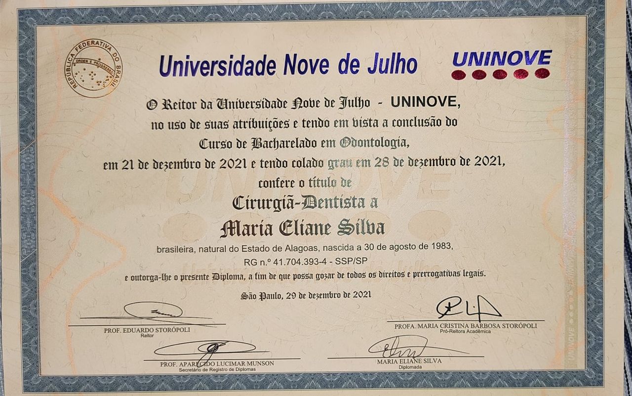 Eu Dra. Eliane Silva sou uma profissional dedicada e experiente na área da odontologia clínica geral. Com anos de prática, Sou comprometida com a saúde bucal dos meus pacientes e com uma abordagem cuidadosa e atenciosa. Eu acredito na importância de um atendimento personalizado, garantindo que cada paciente receba o melhor cuidado possível. Busco sempre atualizações com as últimas tecnologias e técnicas em odontologia para oferecer um tratamento de qualidade.