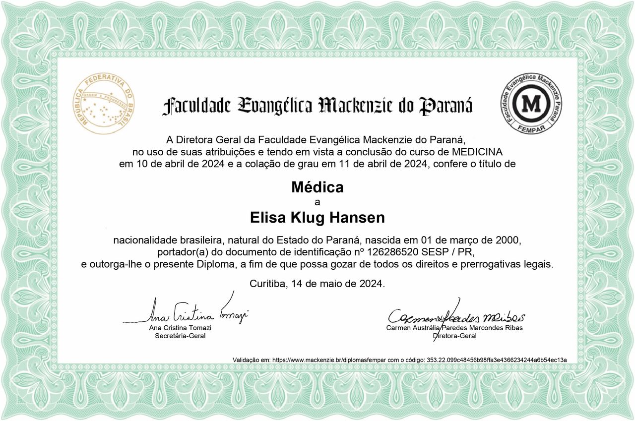 Onde fica o consultório de Elisa Klug Hansen?Elisa Klug Hansen atende em: