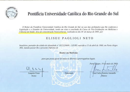 Professor Eméritus de Neurocirurgia da Faculdade de Medicina da PUCRS e Chefe do Serviço de Neurocirurgia do Hospital São Lucas da PUC desde 2003.