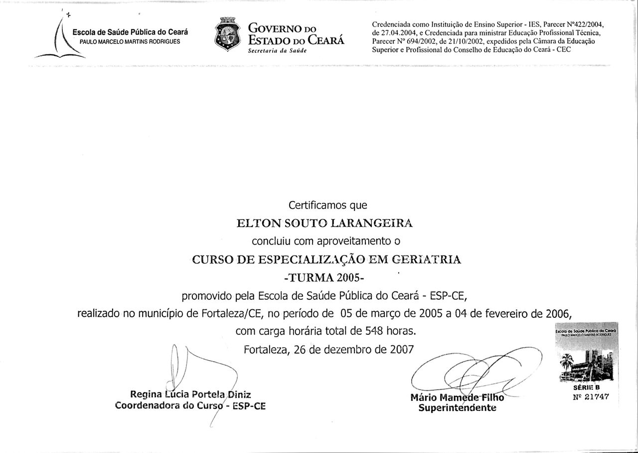 Sou médico graduado em 2001, com Especialização em Geriatria em 2004, Título de Especialista em Medicina de Família e Comunidade em 2022.