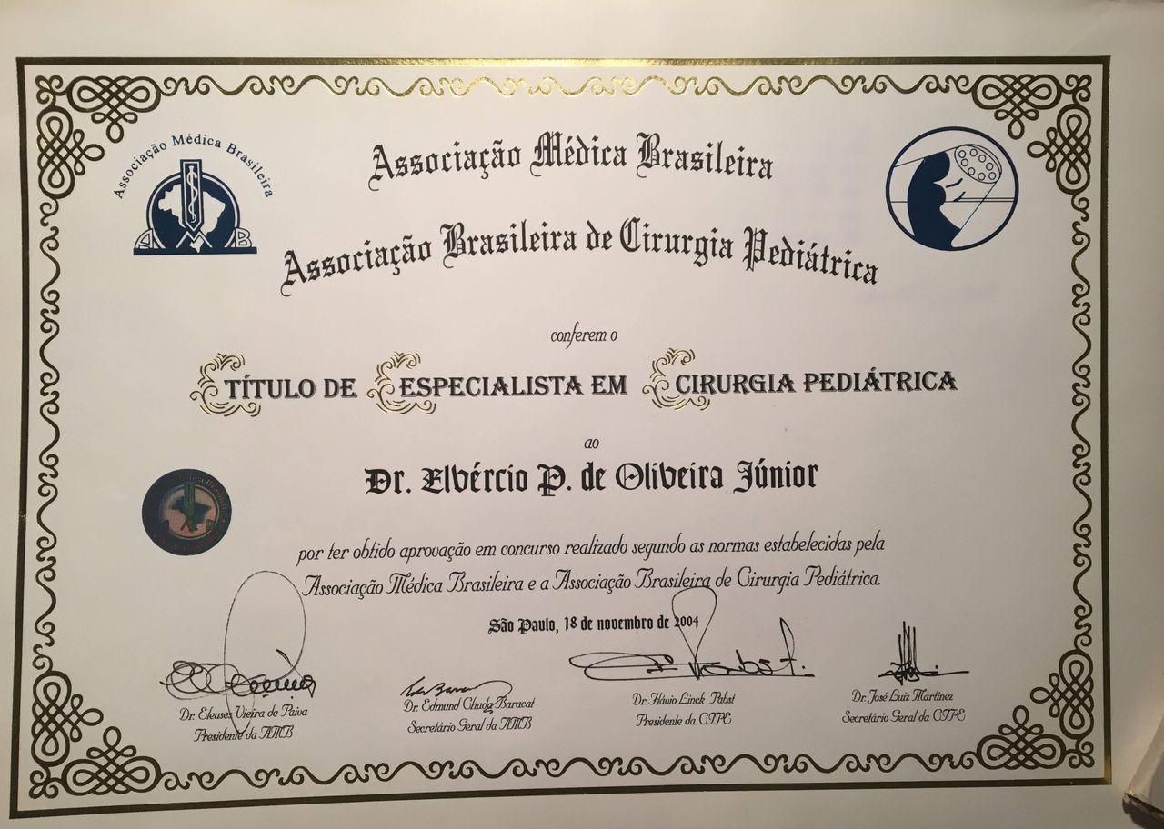 Quais são as principais especialidades de Elvércio Pereira de Oliveira Junior?Elvércio Pereira de Oliveira Junior é cirurgião pediátrico. Te mostramos alguns dos serviços oferecidos pelo especialista graças à sua trajetória e vasta experiência: Cirurgia por laparoscopia, Orquidopexia unilateral, Hipospadia (1 Tempo), Tratamento da sinéquia de pequenos lábios, Consulta particular, Tratamento Cirurgico De Outras Anomalias Congenitas Ano Retal, Ureteroplastia, Pielotomia, Apendicectomia, Uretroplastia (Ressecção De Corda).