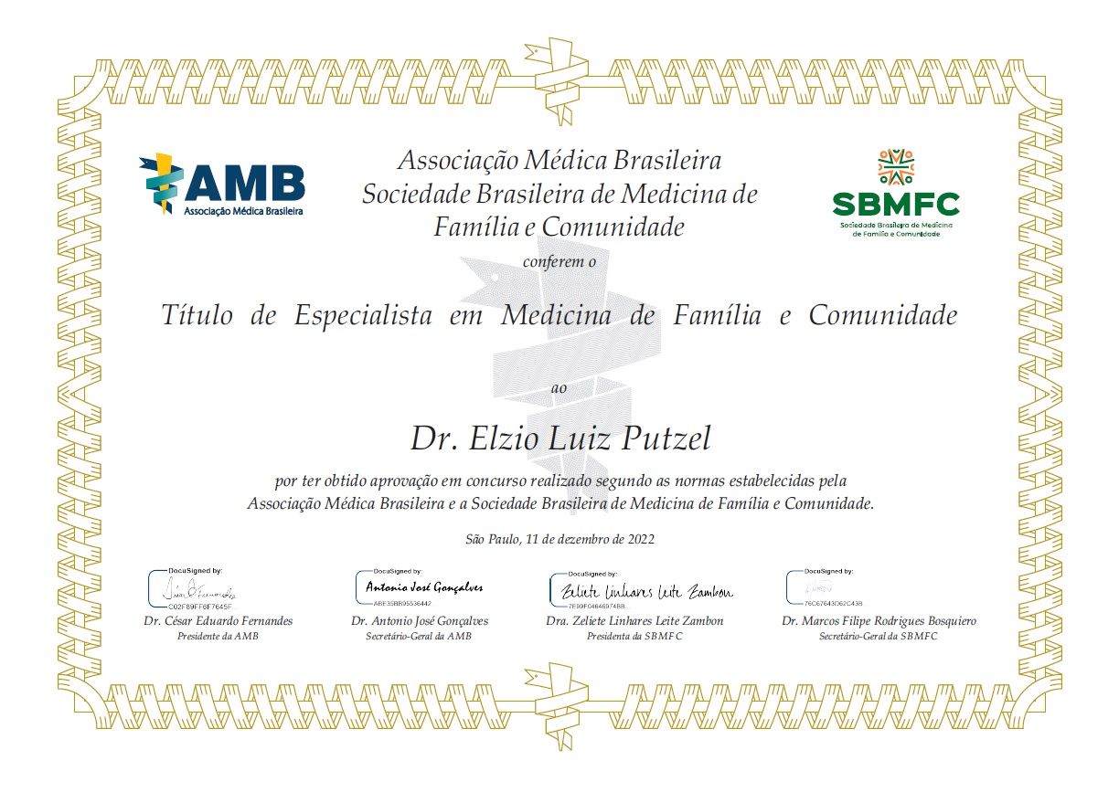 Olá! Sou o Elzio, médico formado desde 2016, pela Universidade do Oeste de Santa Catarina, especialista em Medicina de Família e Comunidade, com bastante experiência em Clínica Geral.