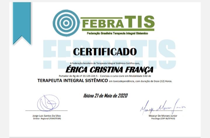 Quais são as principais especialidades de Érica Cristina França?Érica Cristina França é psicanalista, sexóloga, terapeuta complementar. Te mostramos alguns dos serviços oferecidos pelo especialista graças à sua trajetória e vasta experiência: Consulta em psicanálise online, Consulta sexologia, Teleconsulta.