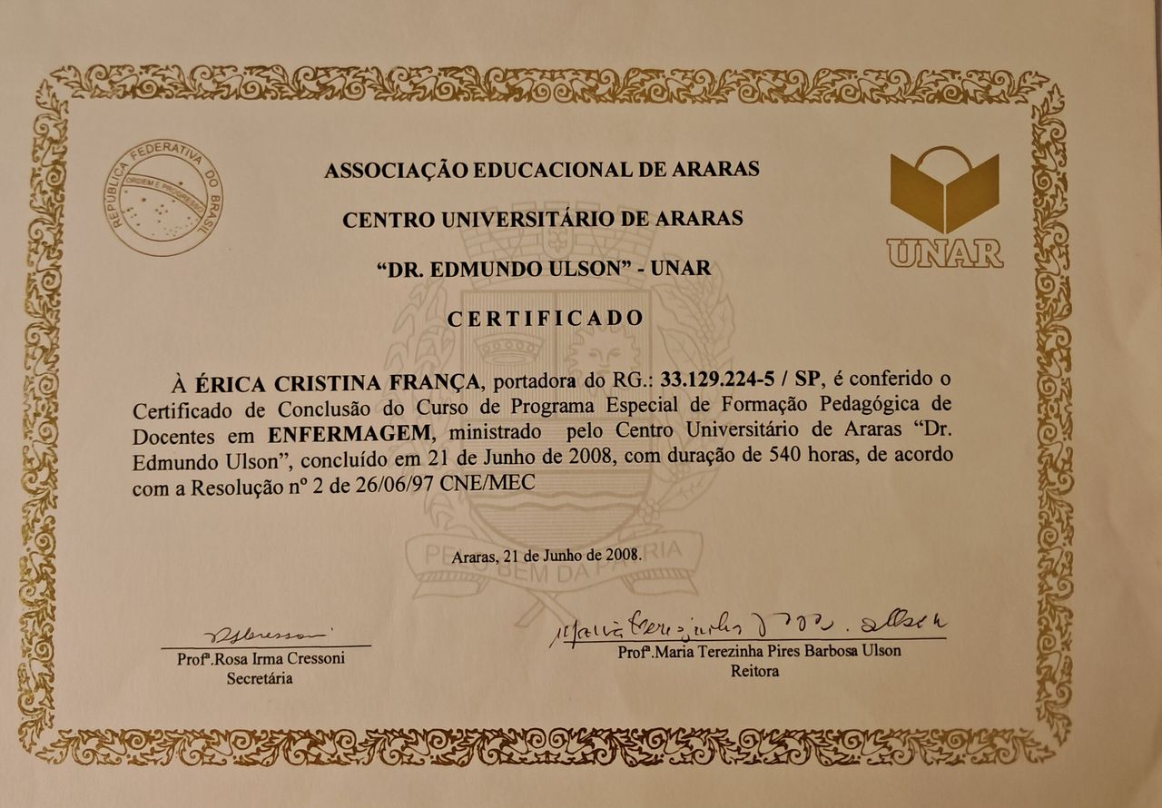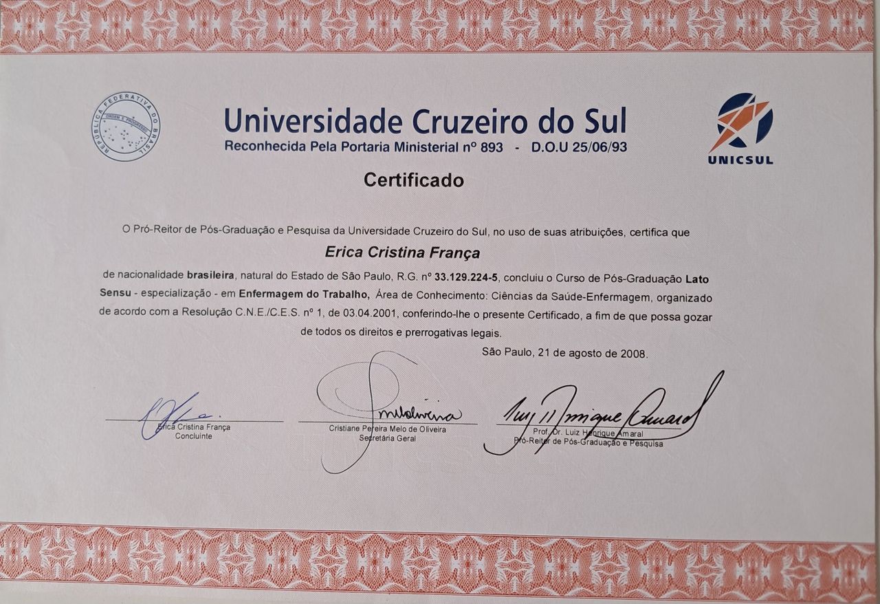 Número de registro: Certificado Apresentado COREN SP 673410