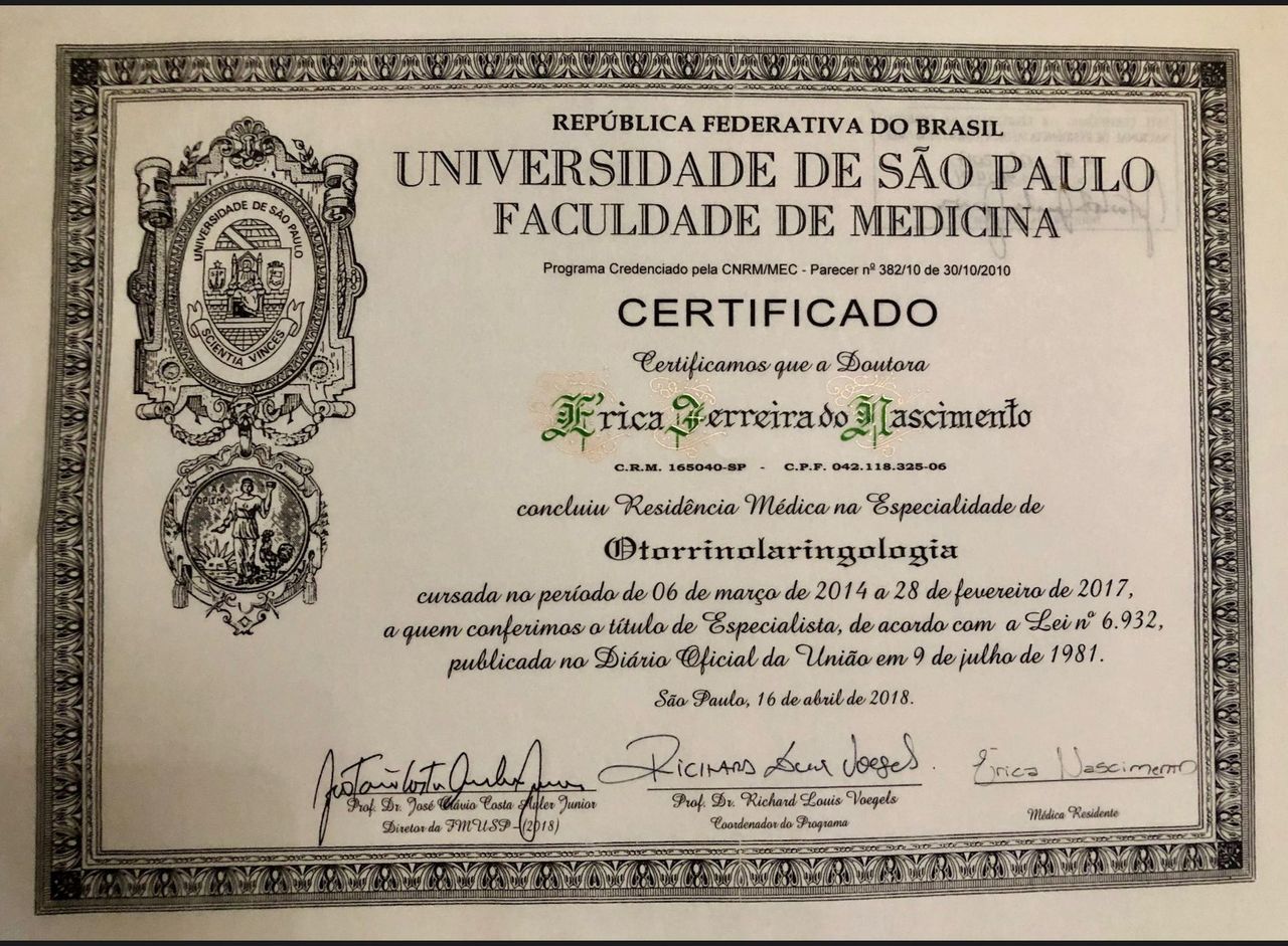 Otorrinolaringologista especialista em Rinoplastia e Cirurgia Plástica da Face pela USP-São Paulo
