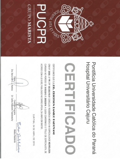 Buscando aprimorar ainda mais minha formação, decidi cursar a Residência Médica em Neurologia no Hospital Universitário Cajuru - PUCPR, de 2013 a 2016. Foi uma experiência enriquecedora que me permitiu aprofundar meus conhecimentos nessa área especializada da medicina.