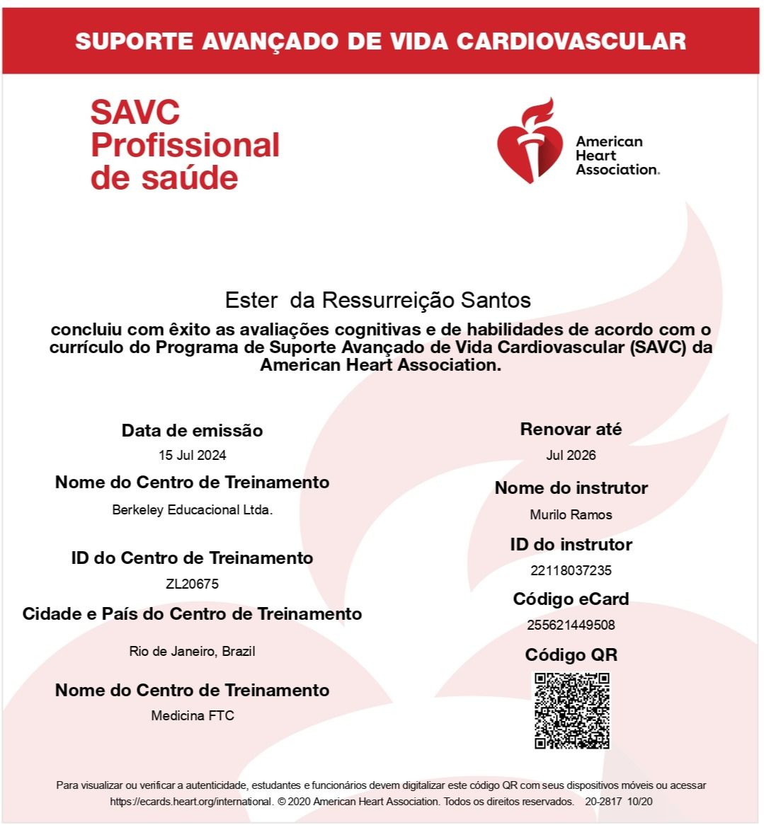 Gostaria de registrar minha admiração pelo trabalho da Dra. Ester. Além do conhecimento técnico impecável, sua atenção, empatia e cuidado fazem toda a diferença no atendimento. É raro encontrar profissionais tão competentes e humanos. Parabéns por exercer a medicina com tanta excelência.