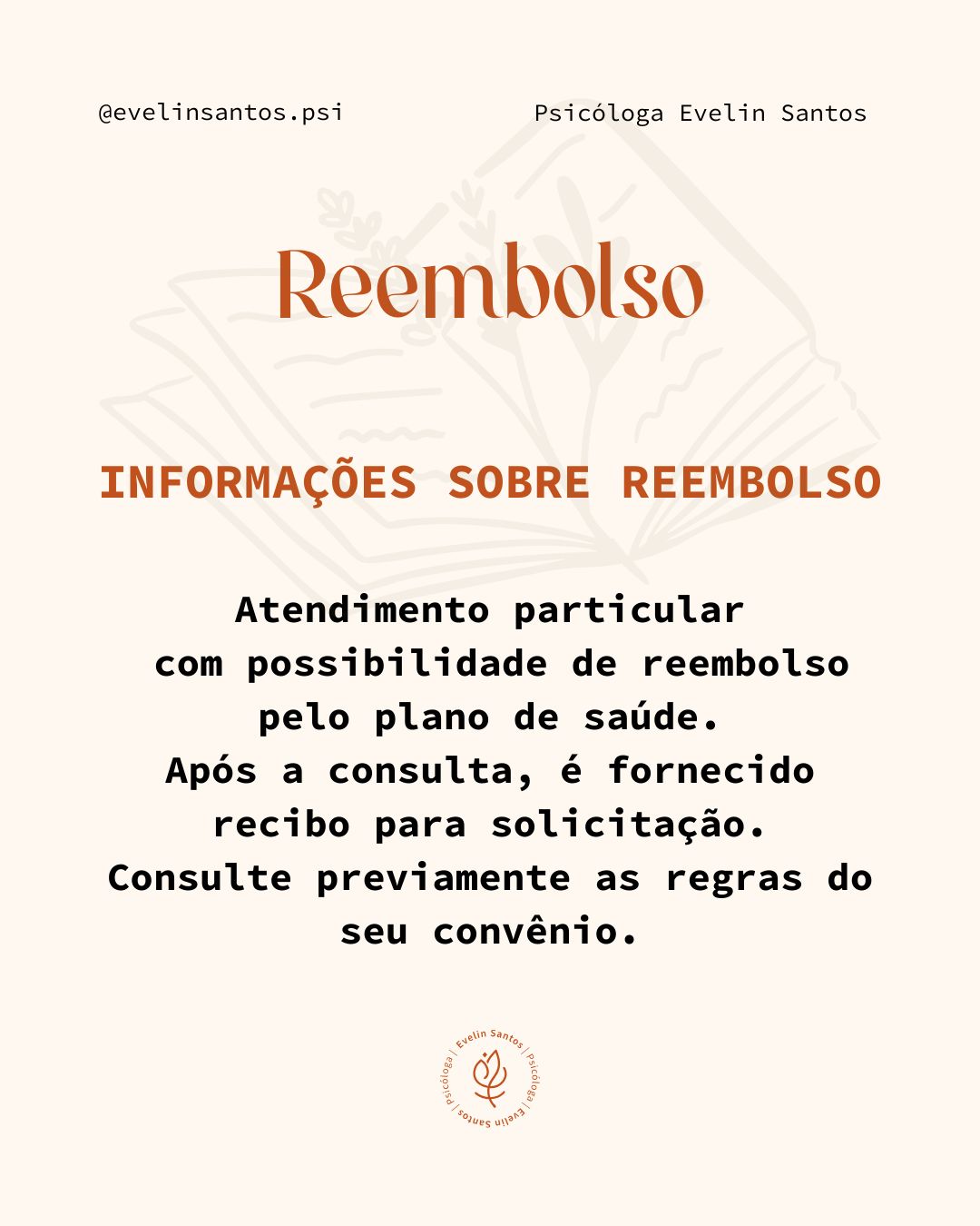 As consultas são particulares, com possibilidade de reembolso conforme as regras do plano de saúde. Após o atendimento, é fornecido recibo para solicitação.