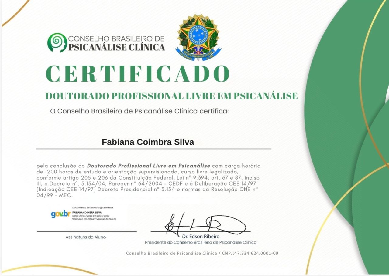 Hoje, aos 40 anos, com diversas especializações e Doutorado em Psicanálise, posso afirmar com serenidade: estou vivendo o propósito que nasceu comigo.