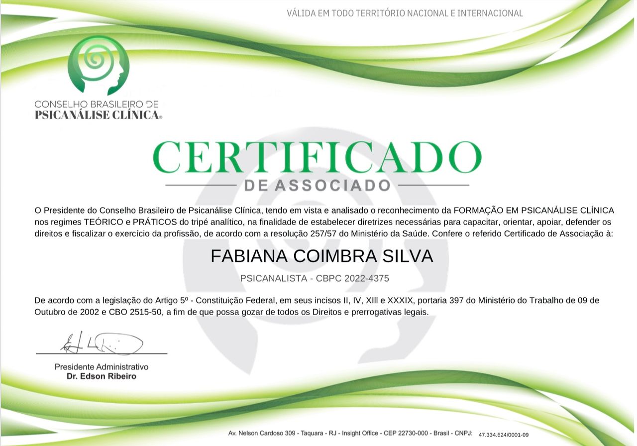 • Psicanalista Fabiana Coimbra • Primeira consulta psicanálise •