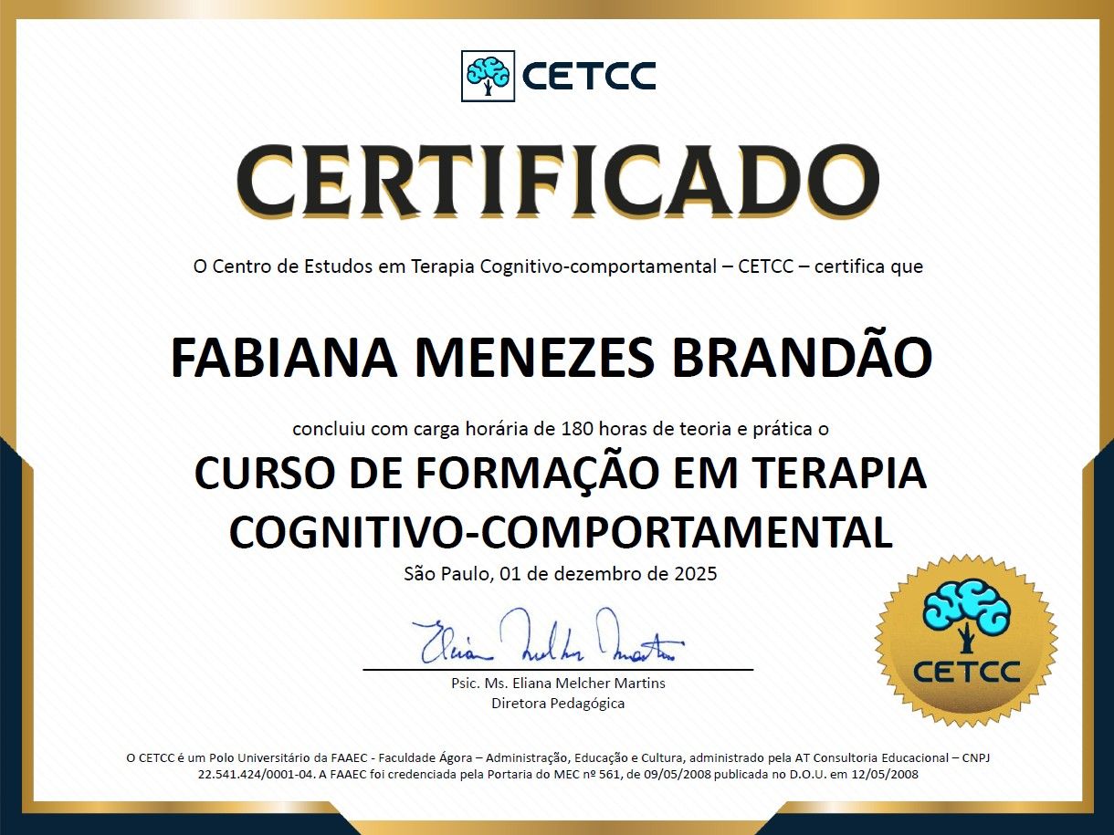 Psicóloga e Neuropsicóloga. Atendimento online para adultos e adolescentes e presencial para avaliação neuropsicológica. Utilizo a abordagem Terapia Cognitivo-Comportamental (TCC). Experiência com Transtornos de Ansiedade, Auto-estima, Estresse, Questões de relacionamento, Burnout.