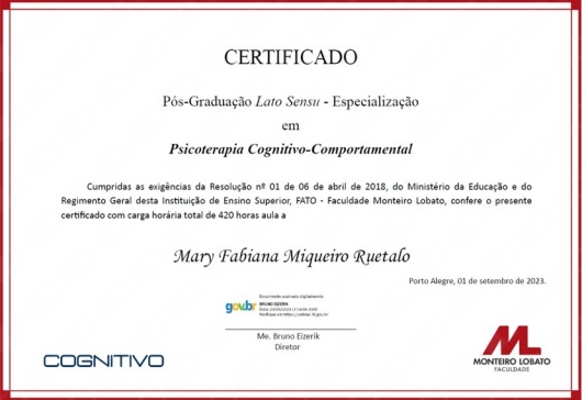 No decorrer dos anos atuei na linha Psicoanalítica, mas, ao observar as necessidades e as demandas da sociedade atual, busquei formação em TCC, com o intuito de agregar ferramentas para aprimorar a prática clínica.
