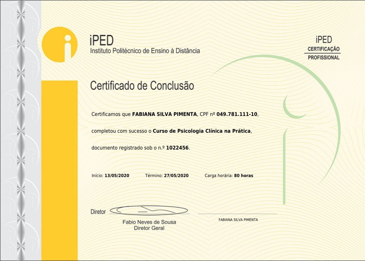 Quais são as principais especialidades de Fabiana Pimenta?Fabiana Pimenta é psicóloga. Te mostramos alguns dos serviços oferecidos pelo especialista graças à sua trajetória e vasta experiência: Teleconsulta, Atendimento psicológico online, Consulta de psicologia online, Atendimento Online em Psicoterapia, Psicoterapia online, Atendimento Psicológico online para adulto, Terapia online, Primeira consulta psicologia, Consulta Psicologia, Retorno de consulta psicologia.