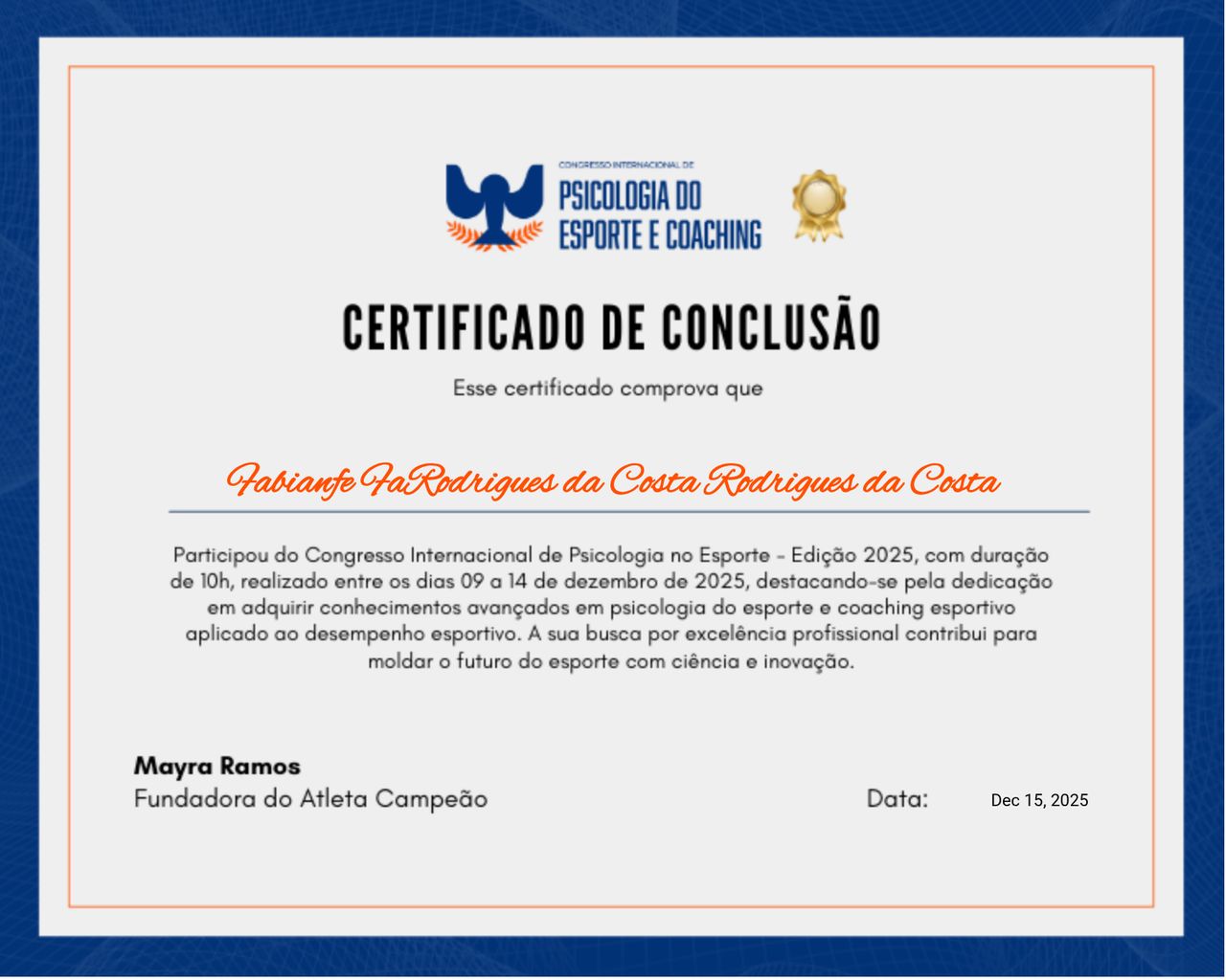 A Drª Fabi é uma profissional muito atenciosa. Desde o princípio nos explicou o propósito do seu trabalho de forma clara e tem sido muito atenciosa nas sessões com meu filho. Tem bastante experiência com atletas, que era o que precisávamos.