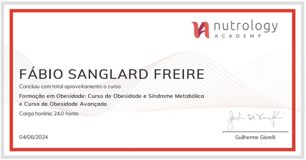 Formação em Obesidade: "Curso de Obesidade e Síndrome Metabólica" e "Curso de Obesidade Avançado" pela Nutrology Academy, 2024.*
