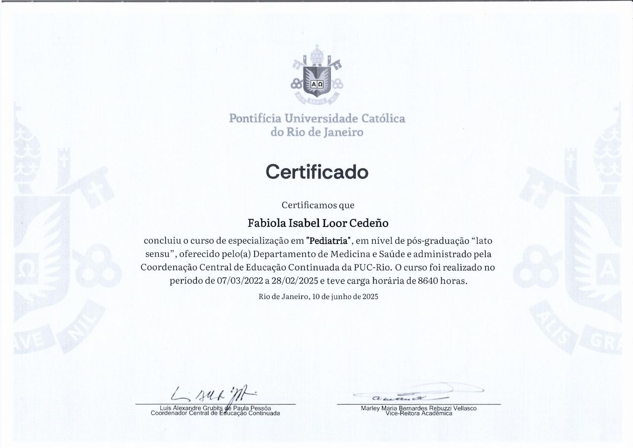 Sou a Dra. Fabiola Isabel Loor Cedeno, com pós-graduação em Pediatria pela PUC-Rio e em Endocrinologia Pediátrica pelo HUPE/UERJ. A endocrinologia pediátrica é a área que cuida do crescimento, desenvolvimento e equilíbrio hormonal das crianças e adolescentes.