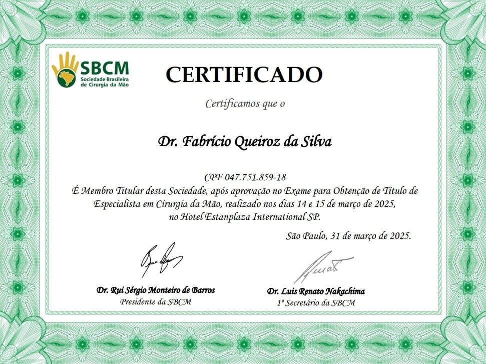 Quais são as principais especialidades de Fabrício Queiroz da Silva?Fabrício Queiroz da Silva é ortopedista - traumatologista, cirurgião da mão. Te mostramos alguns dos serviços oferecidos pelo especialista graças à sua trajetória e vasta experiência: Consulta ortopedia e traumatologia, Artroscopia do ombro , Reparo de rotura do manguito rotador (procedimento descompressivo), Infiltrações intra-articulares guiadas por imagem, Consulta de retorno, Abertura De Bainha Tendinosa, Abertura De Polia Sinovial De Bainha Tendinosa, Artrocentese Acromio-Clavicular Ou Esterno-Clavicular, Artrocentese Escapuloumeral, Artrocentese Do Cotovelo.