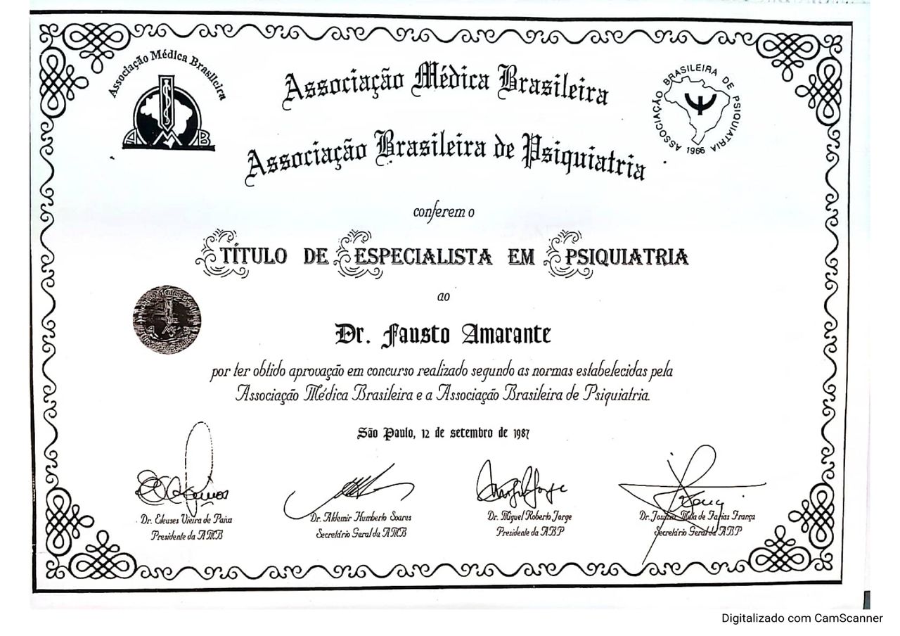 Quais são as principais especialidades de Fausto Amarante?Fausto Amarante é psiquiatra. Te mostramos alguns dos serviços oferecidos pelo especialista graças à sua trajetória e vasta experiência: Primeira consulta Psiquiatria, Tratamento para anorexia nervosa, Tratamento da síndrome do pânico, Tratamento de obesidade, Tratamento da insônia, Tratamento para bulimia nervosa, Tratamento de transtornos alimentares, Tratamento do transtorno de estresse pós-traumático, Tratamento da esquizofrenia e outros transtornos psicóticos, Tratamento para compulsão alimentar.