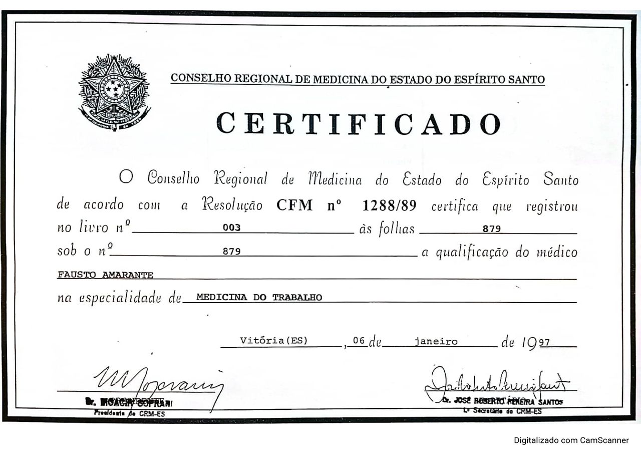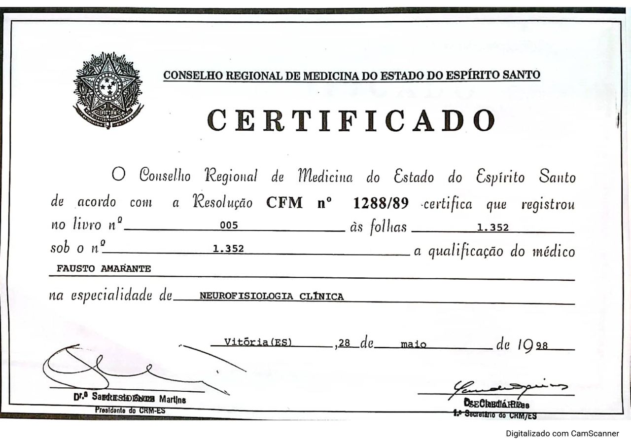 Médico Neurofisiologista Clínico (R.Q.E.: 1.352), Médico Ocupacional e do Trabalho (R.Q.E.: 879)