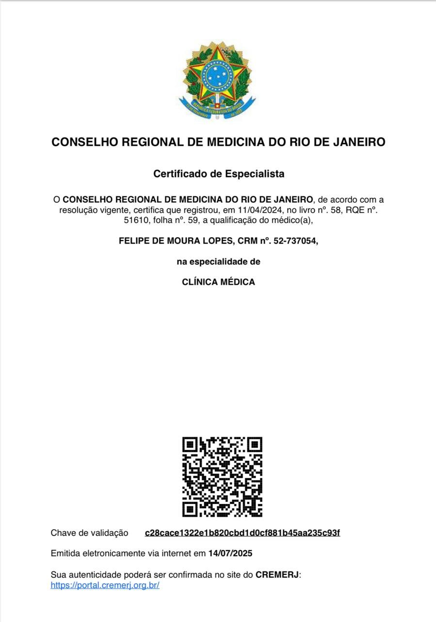 Posso passar por atendimento online com Felipe De Moura Lopes, sem ter que ir até o consultório?Não, no momento Felipe De Moura Lopes não oferece atendimento online.