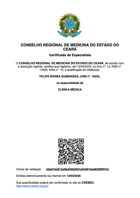 Olá, seja bem-vindo(a). Sou o Dr. Felipe Guimarães, médico especialista em Clínica Médica.