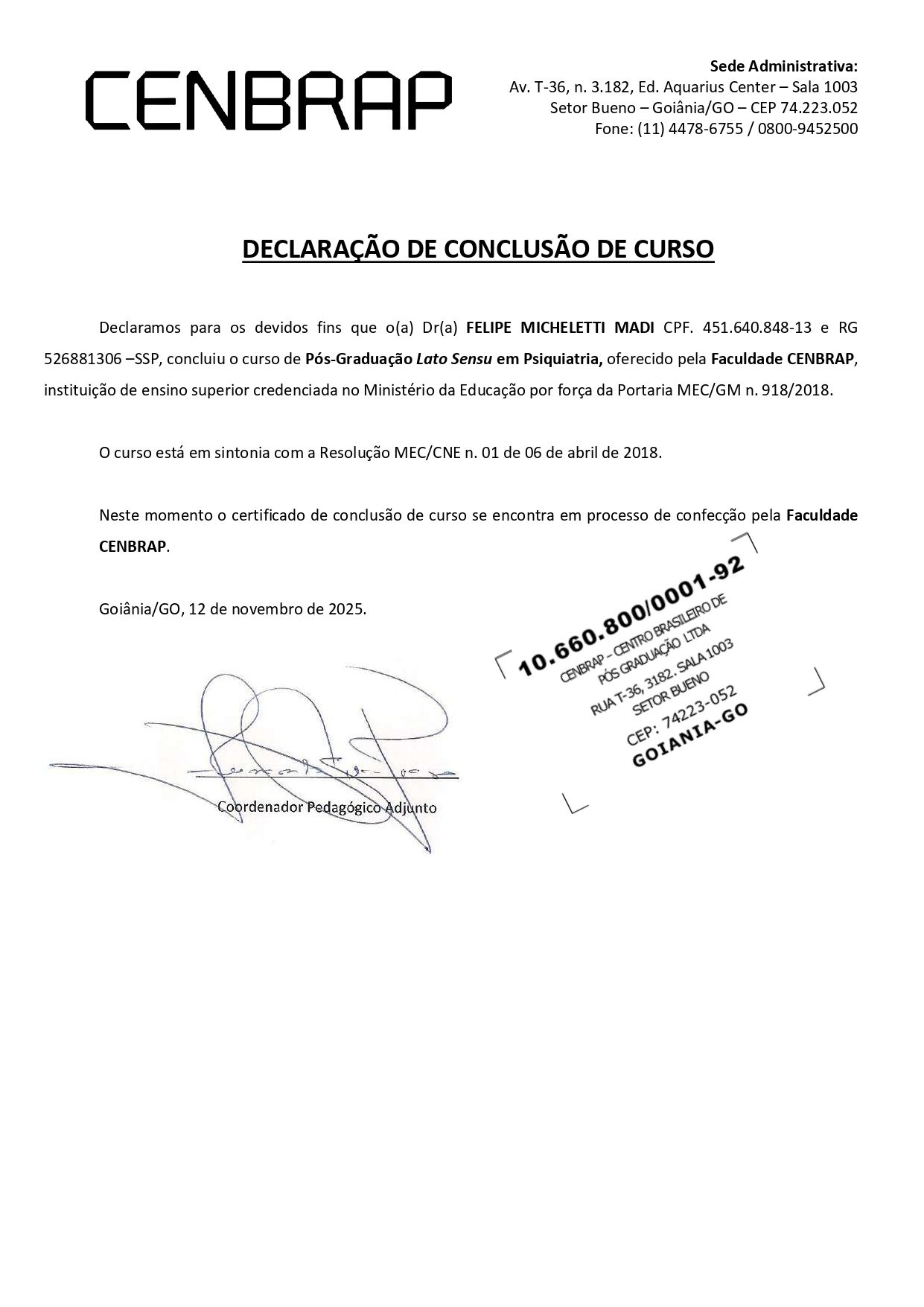 Quero agradecer ao Felipe que no pior momento que passei ele foi o médico que mais compreendeu os meus sintomas e encontrou uma medicação que de fato fez efeito. Sempre tive minhas ressalvas com medicações Psicotrópicas pois nunca via algum efeito sobre mim. Mas as prescrições do Dr. me fizeram ter outra visão. Pois o remédio me ajudou a sair de um sofrimento muito grande