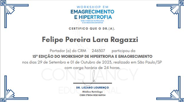 Quais são as principais especialidades de Felipe Pereira Lara Ragazzi?Felipe Pereira Lara Ragazzi é nutrólogo. Te mostramos alguns dos serviços oferecidos pelo especialista graças à sua trajetória e vasta experiência: Primeira consulta nutrologia.