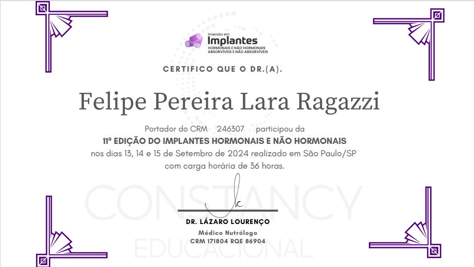 Quando poderia me consultar com Felipe Pereira Lara Ragazzi?No momento não há horários disponíveis com Felipe Pereira Lara Ragazzi, já que sua agenda está cheia nas próximas semanas. Recomendamos que entre em contato com Felipe Pereira Lara Ragazzi para tentar um encaixe ou caso deseje agendar sua consulta mais para frente.