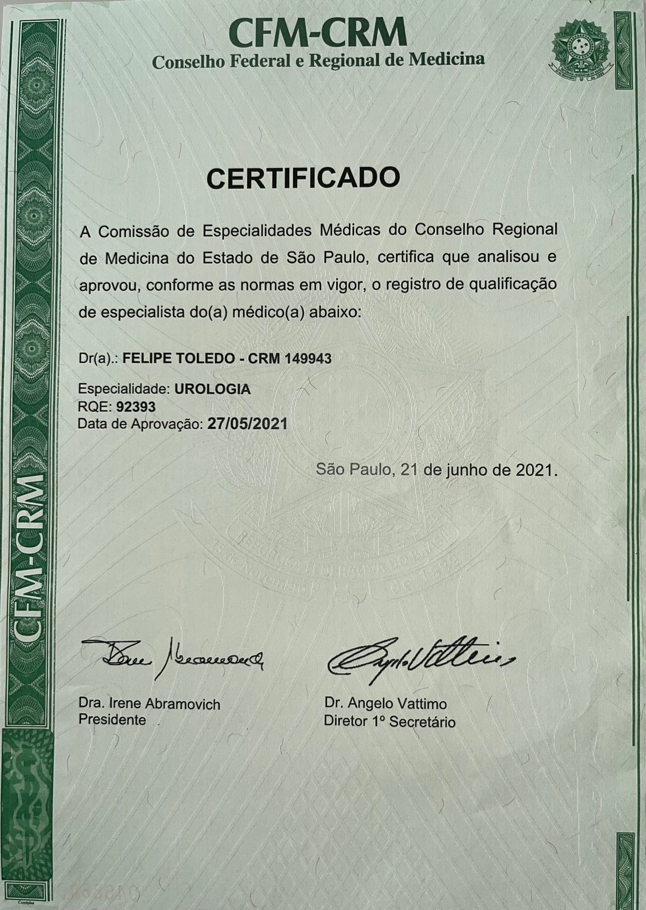 Quais são as principais especialidades de Felipe Toledo?Felipe Toledo é urologista. Te mostramos alguns dos serviços oferecidos pelo especialista graças à sua trajetória e vasta experiência: Teleconsulta, Tratamento de infertilidade, Tratamento de fimose, Andrologia, Tratamento infecção urinária de repetição, Ablação percutânea de tumor renal, Diagnóstico e tratamento de hiperplasia prostática benigna, Aplicação de acido hialurônico, Aumento benigno da próstata, Avaliação para Vasectomia.