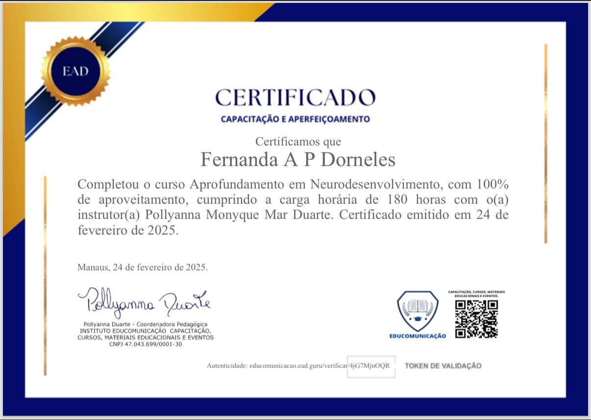 - Sou qualificada na Intervenção Fonoaudiológica no TEA: Prática Baseada em NDBI (Intervenção comportamental de desenvolvimento naturalista). NDBI é uma abordagem terapêutica que une os princípios da Análise do Comportamento Aplicada (ABA) com o foco no desenvolvimento natural e na interação social em ambientes do dia a dia da criança.