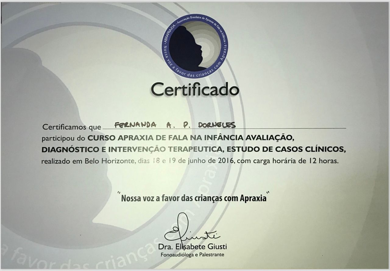 - Possuo a capacitação em Apraxia de Fala na Infância.
