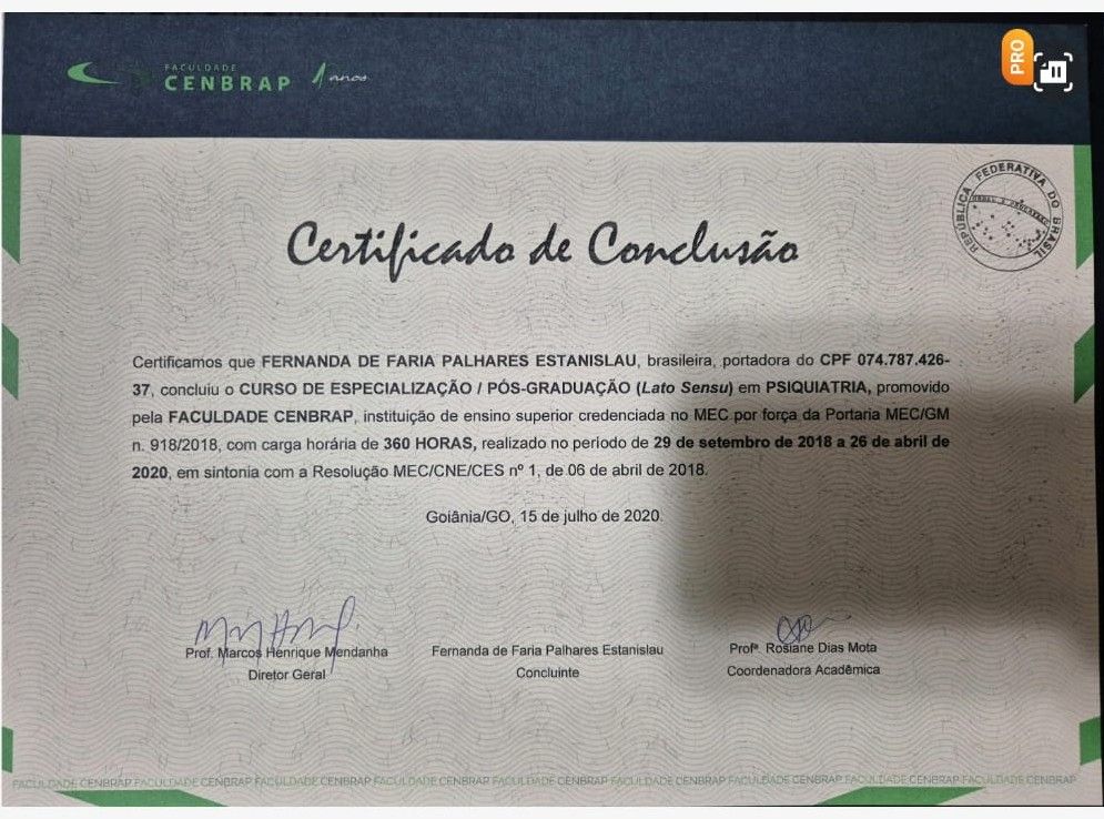 • Teleconsulta - Dra Fernanda De Faria Palhares Estanislau • Primeira consulta Psiquiatria •