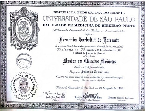 Mestre em medicina pela Faculdade de Medicina da USP-RP (FMRP-USP).